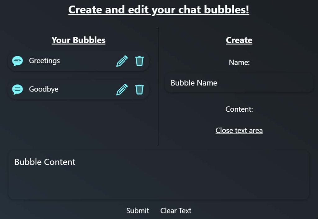 After you fill in the bubble name and content, click on the Submit button on the bottom of the window.