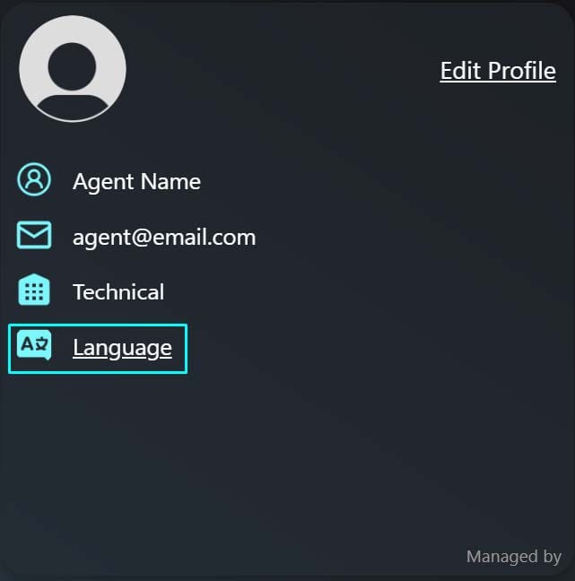 After clicking on the “Person” icon, the agent is relocated to their own personal profile. They can add their profile picture and edit their details, by clicking on the Edit Profile text.