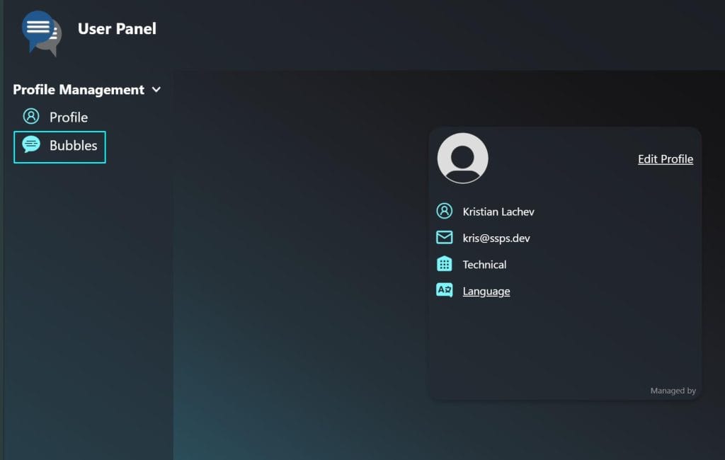 To add custom response bubbles, enter the agent profile page and click on the Profile Management text in the top right sidebar and click on the Bubbles text.