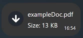 To download file messages, click on the arrow pointing down button. The downloading should start automatically. Afterwards, the file can be accessed on your device’s file system.