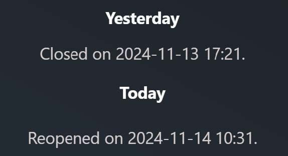 The figure above, shows automatic informational messages created by the system when a ticket has been closed or reopened (in gray). It can be used to keep track of a ticket’s history and the number of times it has been reopened. The text in white is used to show the day when the interaction took place.