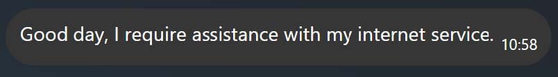 This is a basic customer message, it can be much longer than this, up to 5000 characters. The bottom right corner shows the hour this message was sent.